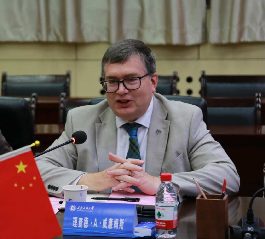 Ричард А. Уильямс выразил благодарность за теплый прием нашего университета и кратко представил характеристики дисциплин, размещение международных кампусов и результаты глобального сотрудничества Университета Хериот-Ватт. Он сказал, что продвижение межкультурного образовательного сотрудничества и воспитание комплексных талантов для решения глобальных вызовов являются общим стремлением двух университетов, Университет Хериот-Ватт придает большое значение сотрудничеству с университетом. Он подчеркнул, что готов совместно с университетом детализировать план реализации программы "3+1", способствовать скорейшему завершению проекта, и ожидает, что обе стороны укрепят междисциплинарное научное сотрудничество в таких областях, как энергетика, искусственный интеллект, инфраструктурное строительство, расширят масштамы взаимных визитов преподавателей и студентов и развернут практическое сотрудничество.