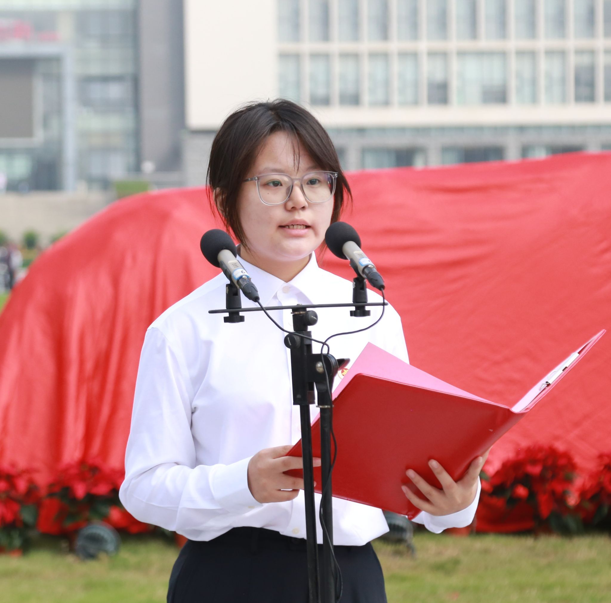 Студентка Лю Иншань из экспериментальной группы 2502 «Превосходство» факультета машиностроения выступила в качестве представителя студентов. Она призвала всех студентов ценить превосходные условия для учебы, помнить девиз университета «Прилежно учиться, активно действовать, непрерывно самосовершенствоваться», укреплять идеалы и убеждения, оттачивать твердые навыки, интегрировать личный рост в великое дело развития страны, быть достойными эпохи и своих лучших лет, воплощать первоначальные устремления и миссию молодежи новой эпохи в практических действиях.