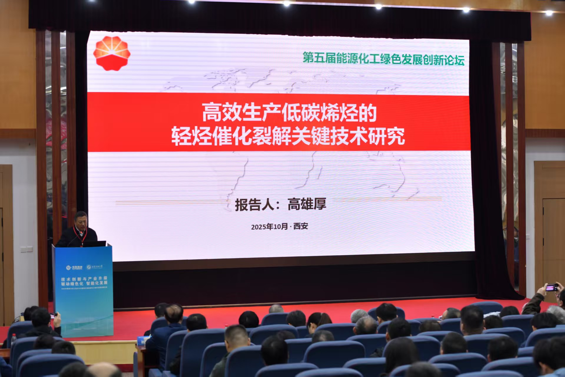 С 23 по 24 октября в Конференц-центре кампуса «Яньта» Сианьского нефтяного университета состоялось торжественное открытие Конференции по технологиям переработки нефти и химической промышленности 2025 и Пятого инновационного форума по зеленому развитию энергетики и химической промышленности, совместно организованных Сианьским нефтяным университетом и Китайской национальной оффшорной нефтегазовой корпорацией (CNOOC). Мероприятие этого года прошло под темой «Технологические инновации и модернизация отрасли движут зеленое и интеллектуальное развитие», собрав более 200 участников, включая академиков, экспертов, ученых и отраслевых представителей со всей страны в области технологий переработки нефти и химической промышленности. Участники совместно обсудили новые пути и будущие тенденции зеленого и интеллектуального развития химической промышленности в контексте технологических инноваций и модернизации отрасли.