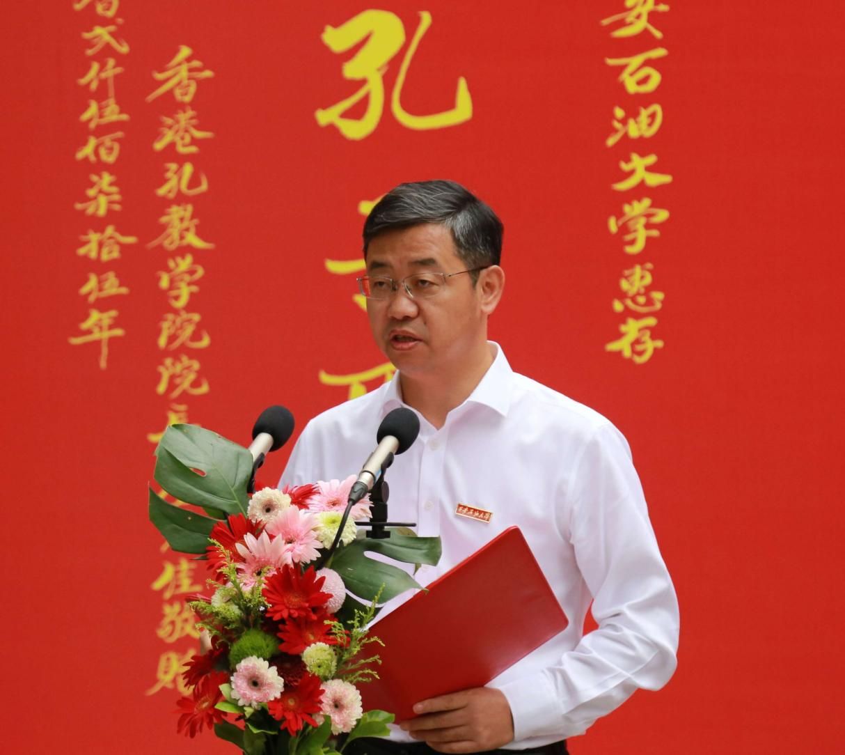 Чжан Му представил историю пожертвования бронзовой статуи Конфуция и выразил сердечную благодарность дарителю — Гонконгской конфуцианской академии и его ректору Тан Эньцзю за поддержку культурного развития университета и их благотворительную инициативу по продвижению превосходной традиционной китайской культуры. Он также разъяснил важность установки статуи Конфуция для воспитания кампусной культуры и сохранения духа образования. Он отметил, что установка бронзовой статуи Конфуция станет новой вехой гуманитарного духа на территории кампуса, вдохновляя преподавателей и студентов на самосовершенствование, нравственность, прилежную учебу и решительные действия.